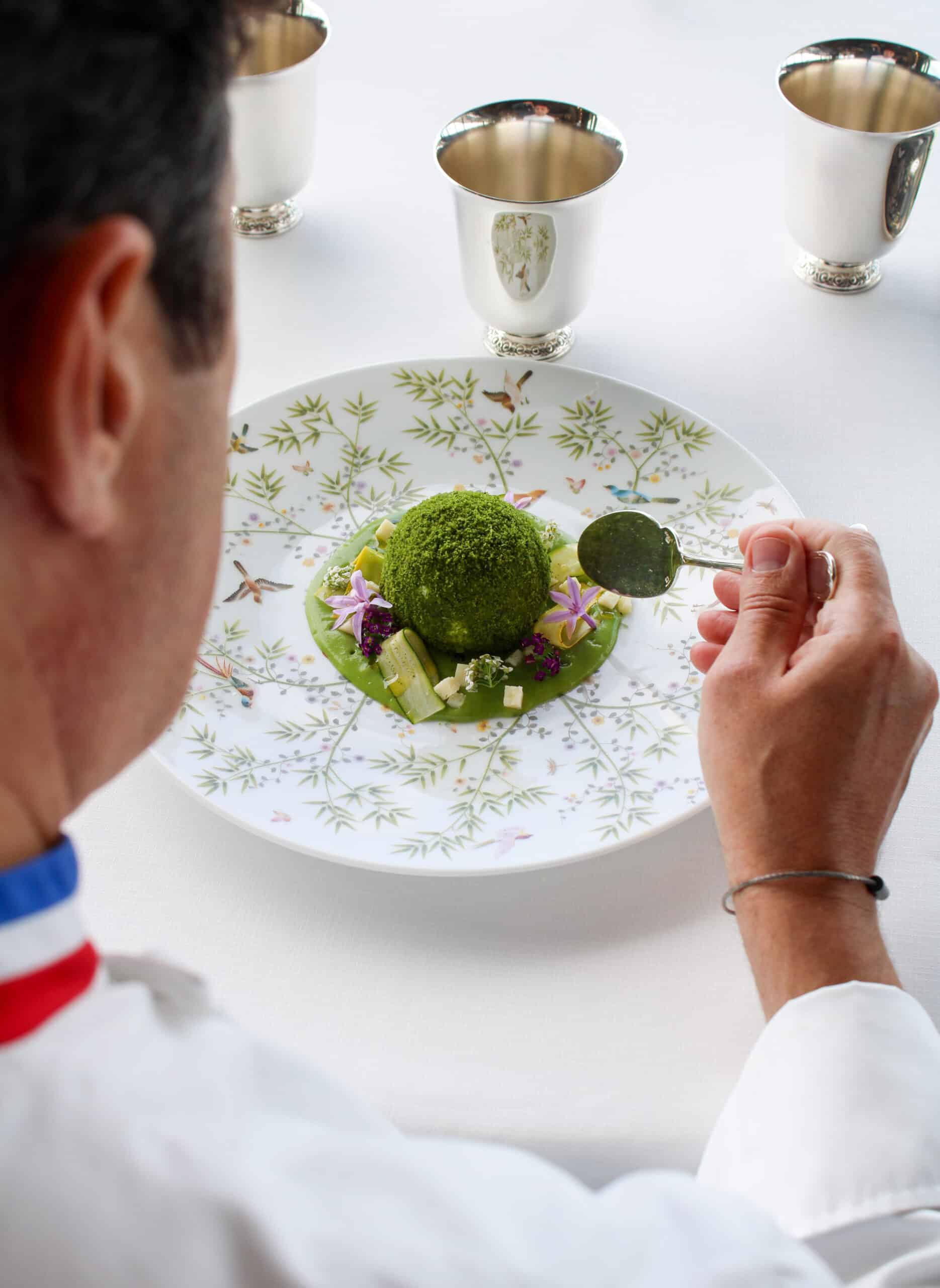 Our Chef Yannick Franques' signature dish has been revamped for the summer. Now coated with a green breadcrumb crust, the Egg Mystery is accompanied by a velvety trombetta zucchini sauce with a hint of basil-infused olive oil. Book now to discover its runny center and experience a timeless gastronomic adventure at La Tour d’Argent.