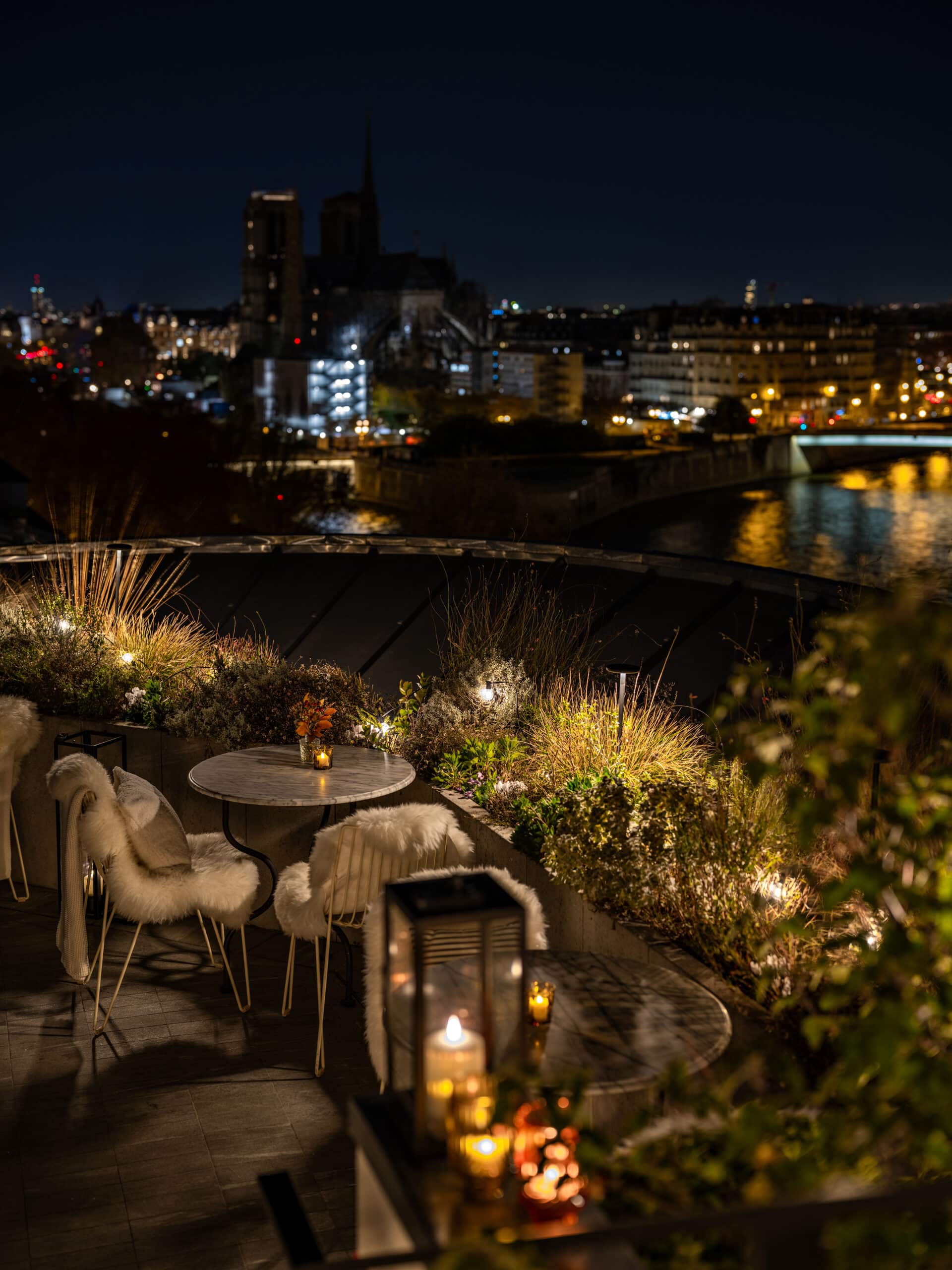 Après avoir illuminé vos soirées estivales, notre rooftop se métamorphose pour la toute première fois en jardin d'hiver. Venez redécouvrir Paris sous son plus beau visage : scintillante, chaleureuse et vibrante à la tombée de la nuit. Laissez-vous séduire par nos cocktails chauds créés par nos talentueux mixologues, un vin d’exception de nos caves mythiques, un verre de champagne ou nos boissons chaudes préparées par notre barista.