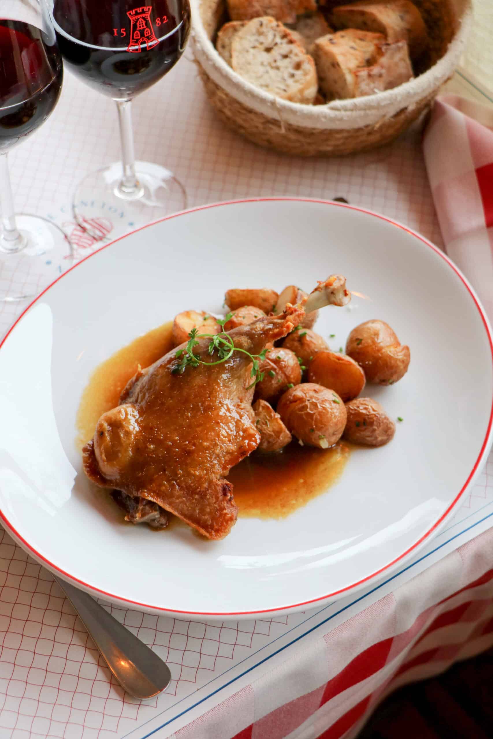 À la Rôtisserie d’Argent, la cuisse de canard confite est une recette incontournable, préparée chaque jour par nos Chefs avec un savoir-faire traditionnel. Lentement confite dans sa graisse pour une chair fondante, puis grillée pour obtenir une peau croustillante, elle est servie avec des pommes de terre sautées et un jus réduit corsé.