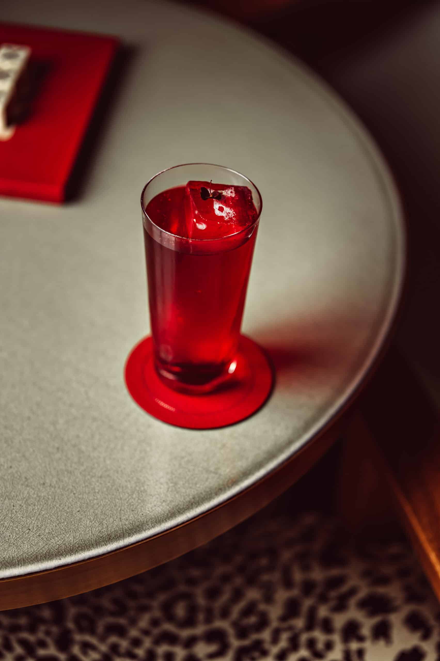 Ce cocktail unique marie les notes florales et acidulées du soda à l’hibiscus, la richesse herbacée de l’Aptekarsky aquavit, et la douceur subtile du Cocchi Americano Rosa. Une composition harmonieuse et élégante, évoquant l’esprit avant-gardiste et le style affirmé qui caractérisaient cette figure mythique.
