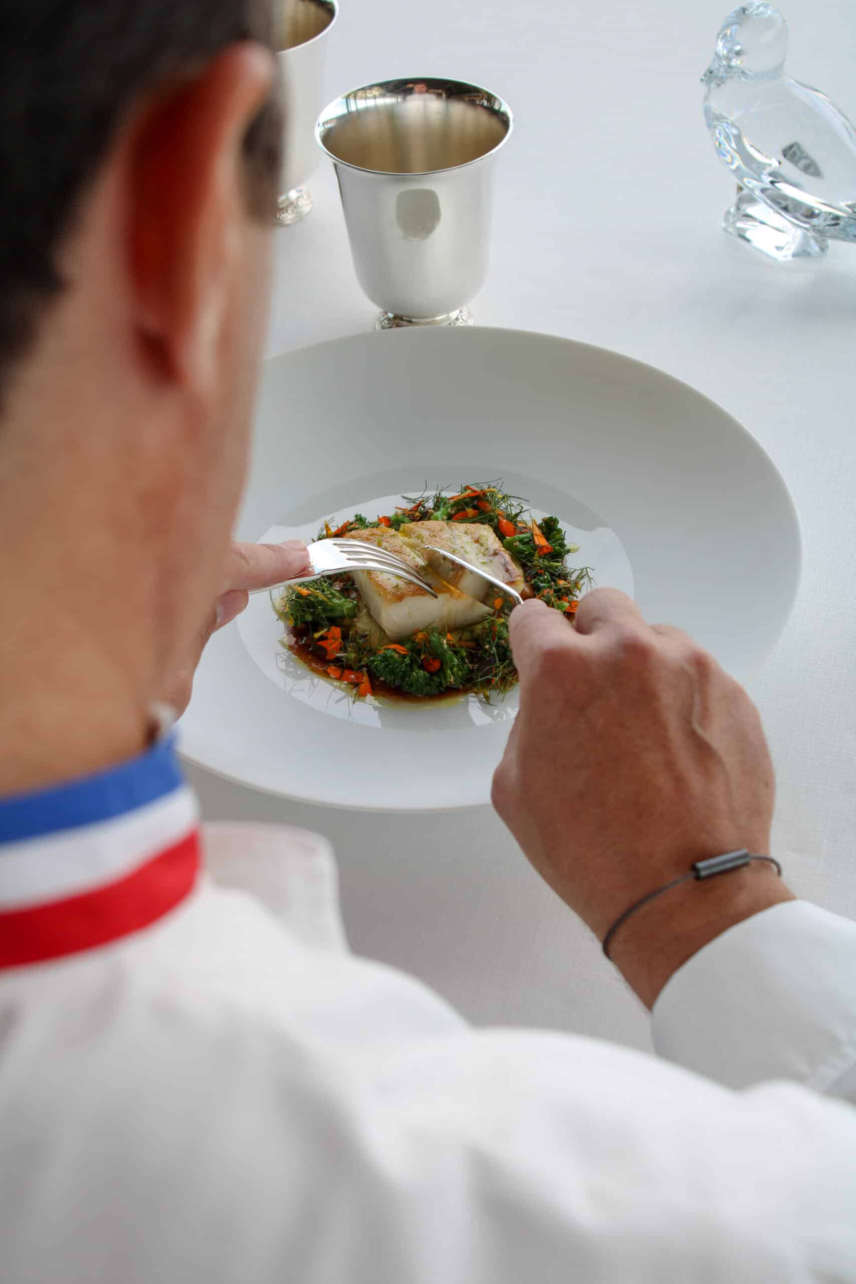 Let yourself be tempted by the flavors of our new recipe from Chef Yannick Franques: a Greater Amberjack – a fish with firm flesh and a delicate taste – line-caught and gently seared in toasted sesame oil, served with a split pea hummus with lime, melting Colonnata lard, and squid with smoked herbs. A dish of great finesse that celebrates the richness of seasonal ingredients and elevates each component in perfect harmony.