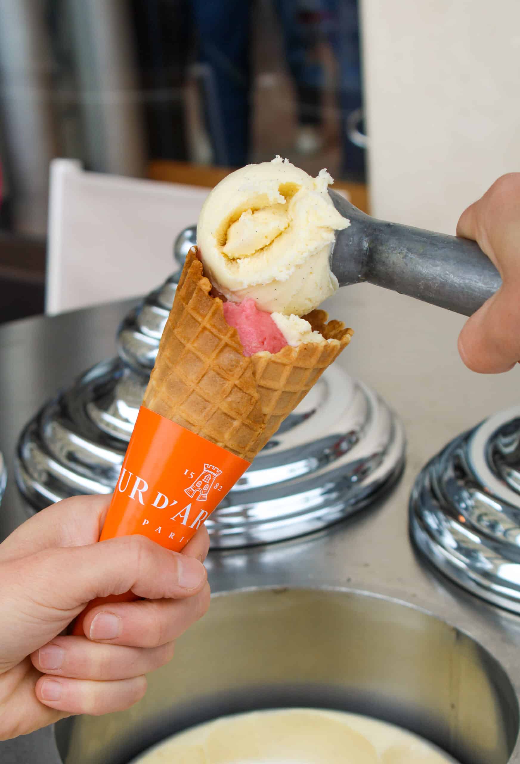 Exclusive this year, the sweet guest of the season: the Mademoiselle sorbet. An orange and Madagascar vanilla creation, inspired by the iconic dessert of the Tour d’Argent, accompanied by a crunchy almond tuile and an orange Mademoiselle coulis. Whether in a cup or cone, it’s an invitation to savor the true taste of Parisian summer.