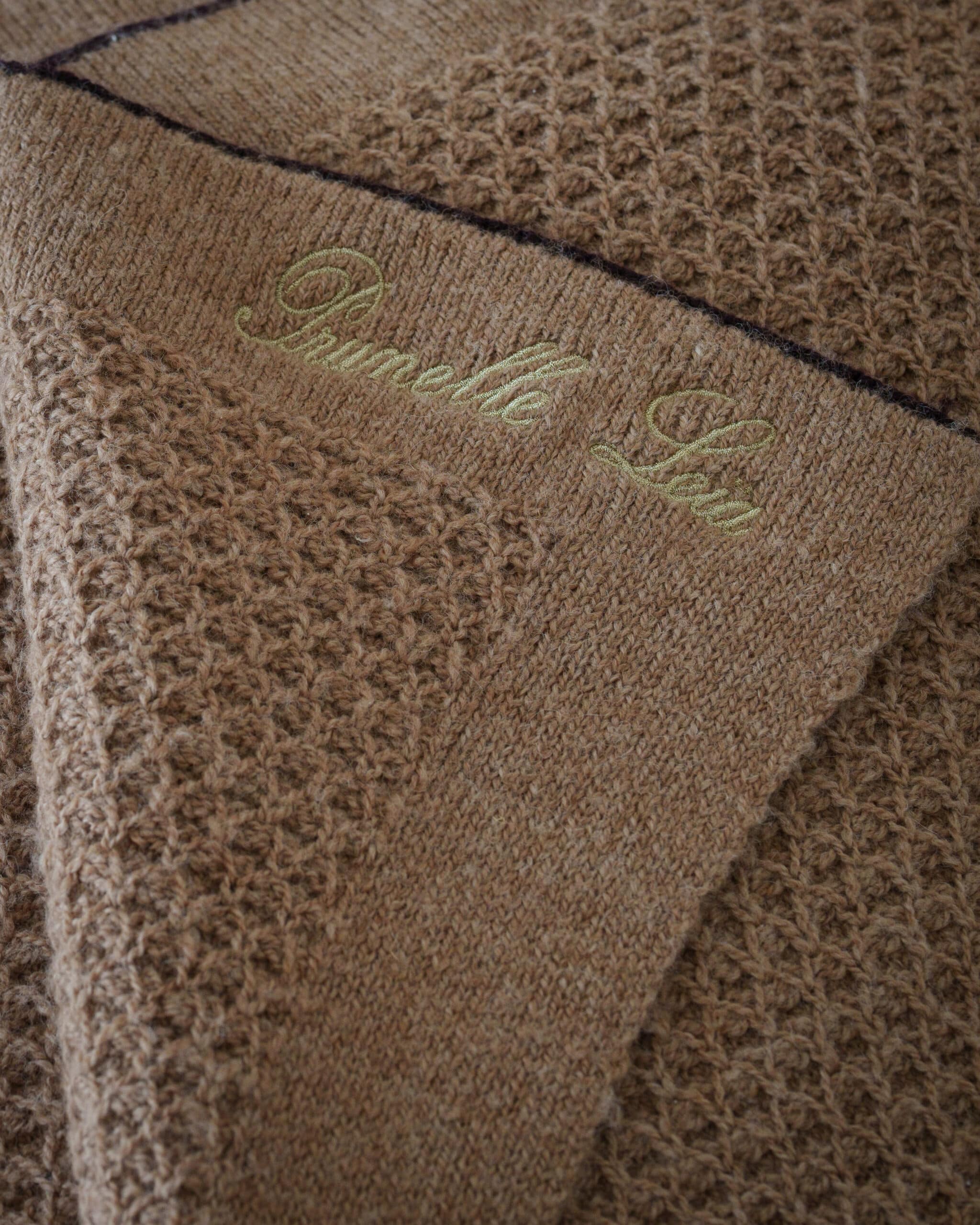 The Plaid Merveilleux embodies a rare and genuine luxury. Each piece is made from the annual shearing of a French alpaca selected for the finesse and uniformity of its fiber. It is a unique object — soft, naturally colored, and entirely traceable, from the farm to the final embroidery. The alpaca’s name, delicately embroidered in champagne-gold thread, becomes the starting point of a singular connection — one that resonates with our own dedication to craftsmanship, heritage, and the celebration of French know-how.