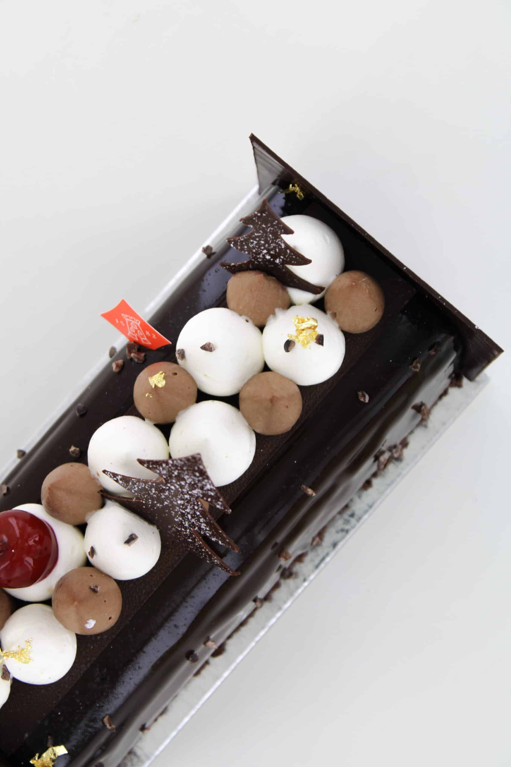 An ode to pastry-making tradition, this yule log reimagines all the hallmarks of this iconic dessert. With a delicate layering of chocolate sponge cake, cherry compote, Amarena cherries, and Madagascar vanilla chantilly cream, it is topped with La Tour d’Argent’s signature 72% dark chocolate mousse. The robust chocolate notes intertwine gracefully with the roundness and acidity of the cherries, creating a harmonious blend of flavors and textures.