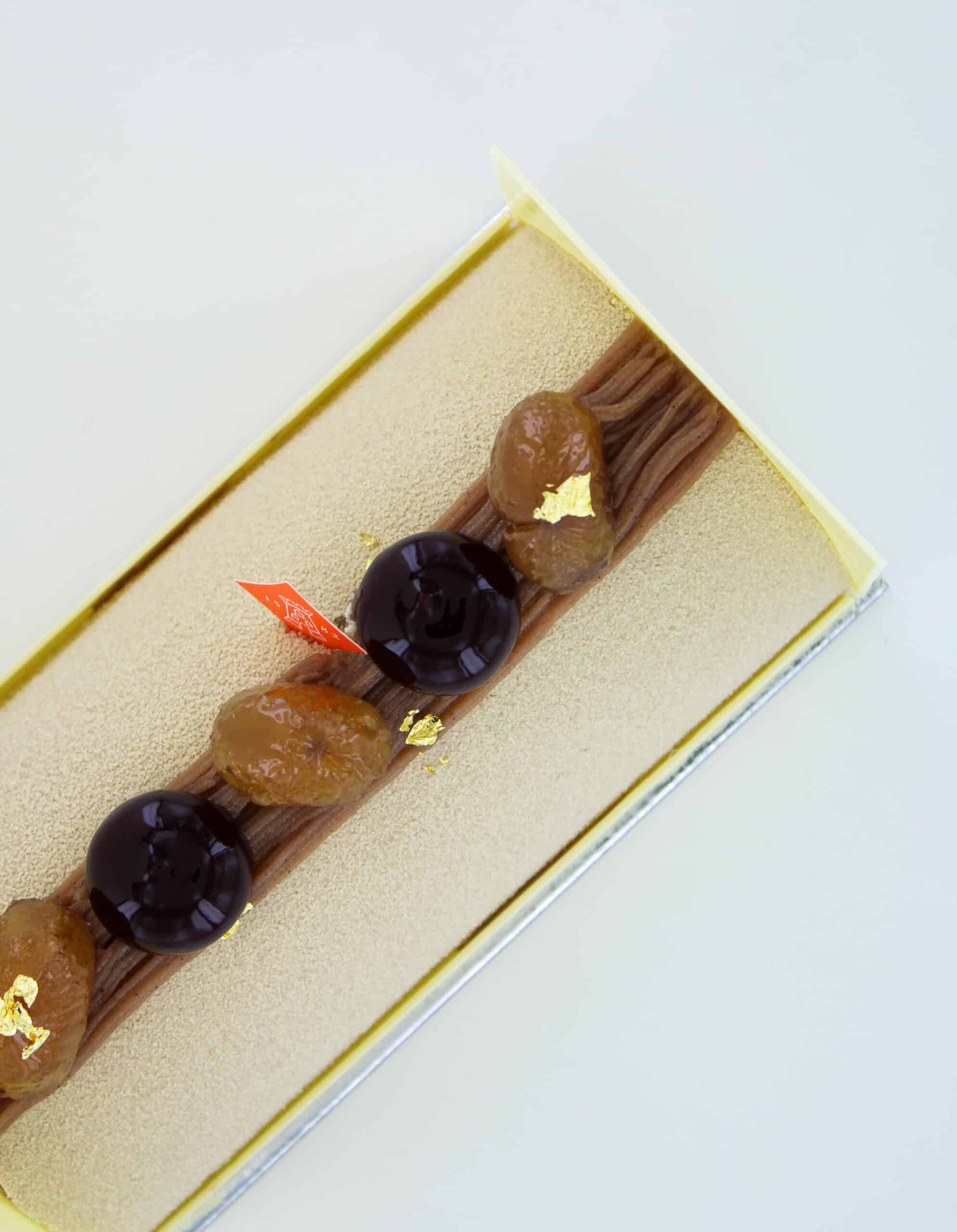 This creation celebrates the comforting harmony of chestnut and blackcurrant. Featuring a soft vanilla sponge, a hazelnut praline crisp with a hint of fleur de sel, a generous blackcurrant compote, and a crunchy yet airy meringue, the log is crowned with chestnut vermicelli. It perfectly embodies the Tour d’Argent spirit: a nostalgic taste of the past, masterfully reimagined with modern techniques and a minimalist contemporary aesthetic.