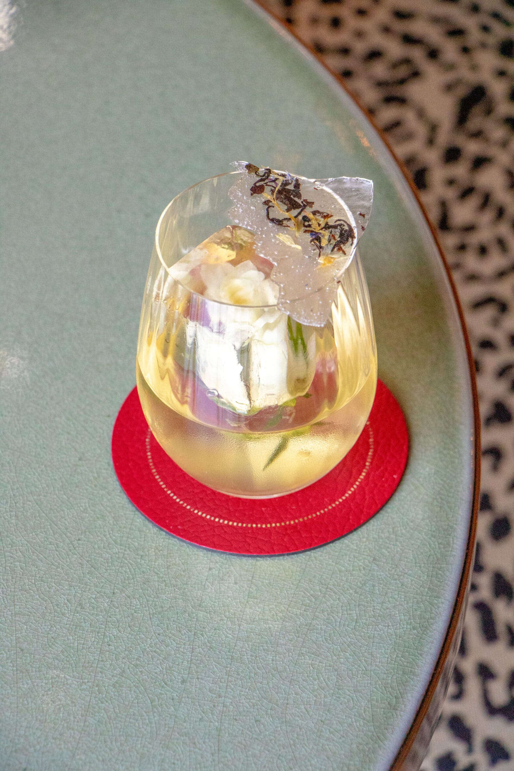 Crafted by our talented Head Bartender, Diego D’Agnolo, this exquisite blend combines the delicacy of white tea cordial, the subtle sweetness of rose petals, the character of Gardener gin, and the finesse of Gancia Americano. This refined composition is crowned with a poetic touch: a crystal-clear ice cube encasing a pristine white rose, a nod to the artistry of Bernard Cathelin.