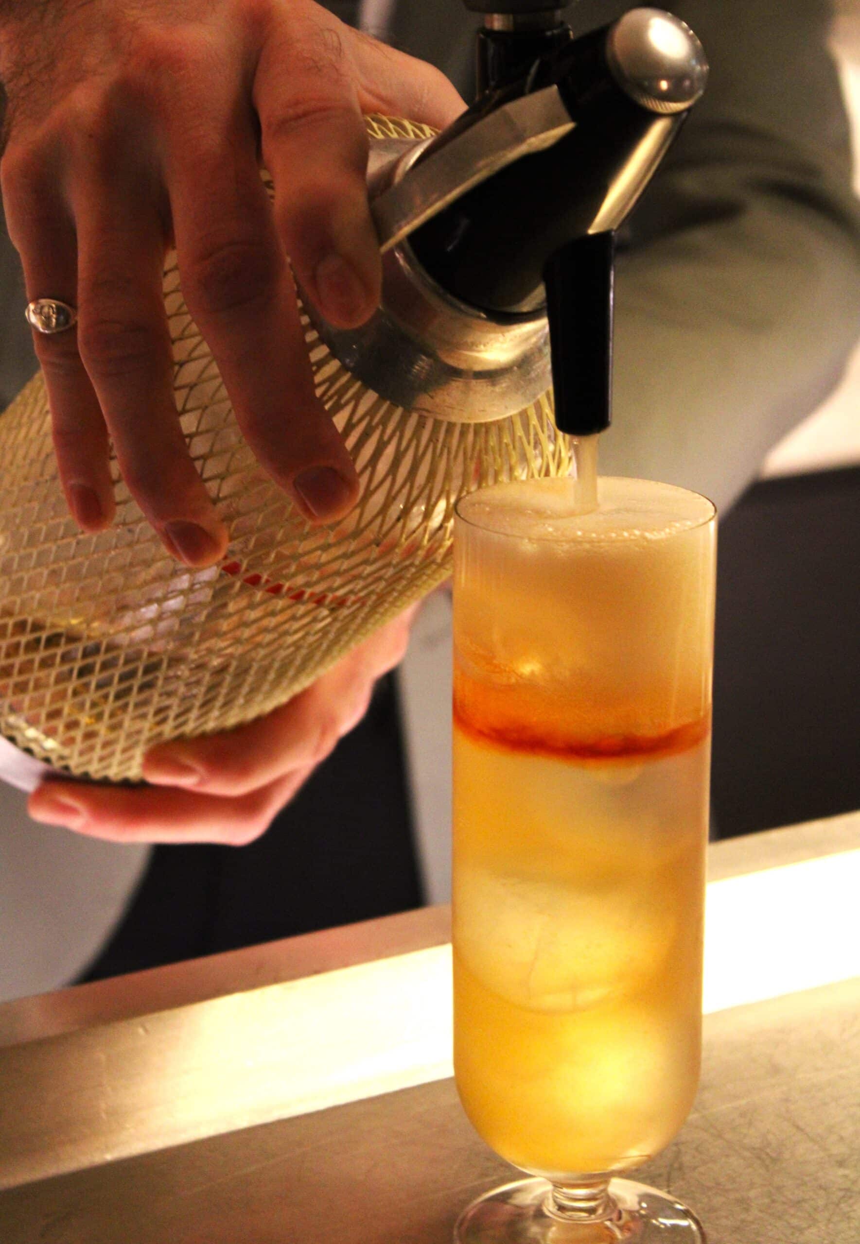 Camus VS Cognac provides structure and power, Umeshu, a Japanese plum liqueur, adds distinctive complexity. Sparkling Sake imparts delicate finesse, Verjus (green grape juice) contributes a touch of acidity, and Sirop Mademoiselle, a Tour d’Argent signature, delivers unparalleled freshness. Lastly, Angostura bitters add a spicy note to perfect this encounter.