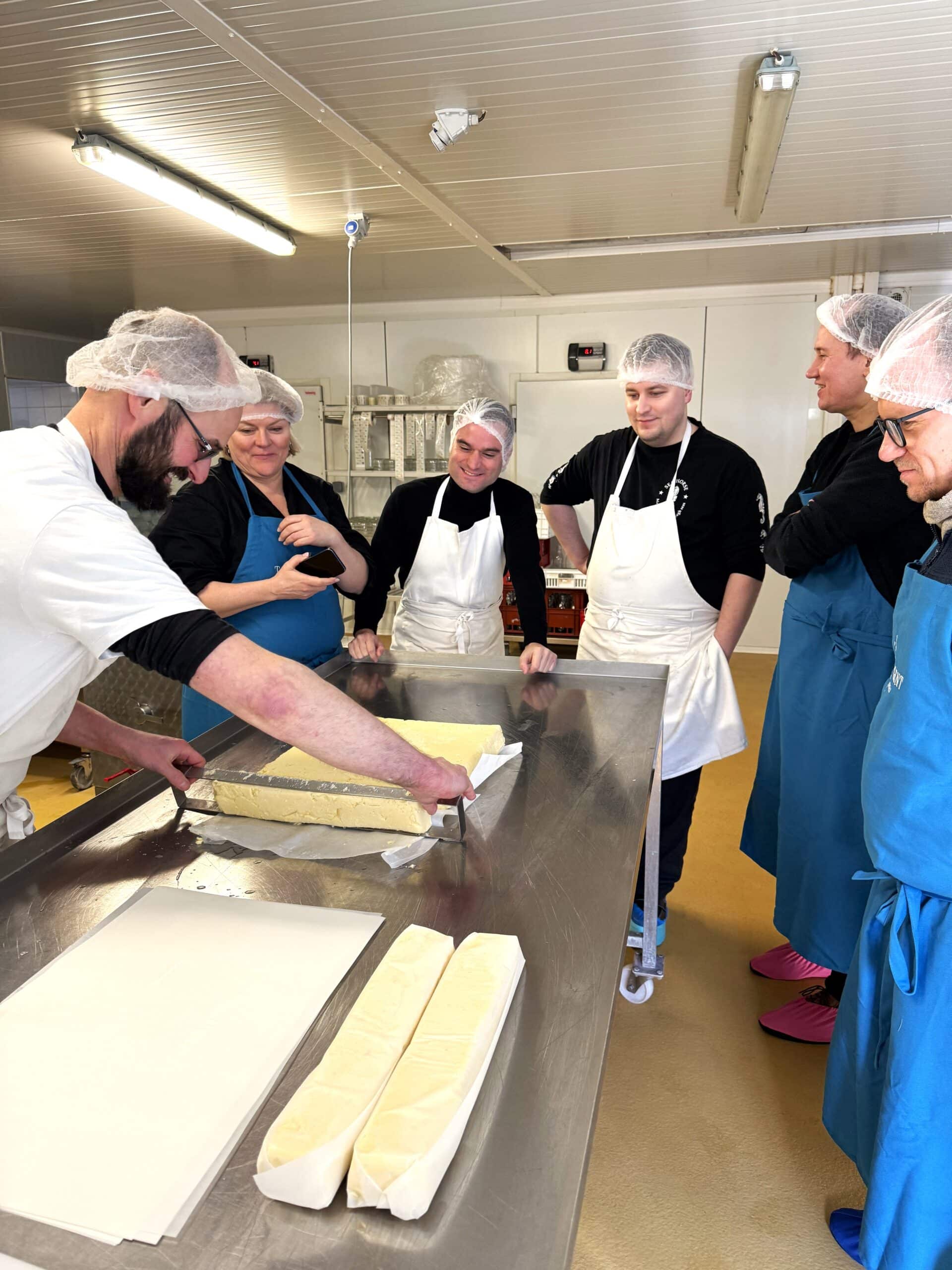 Beyond the cuisine, this encounter was also an immersion into the French art of hospitality for the Savoy teams. Whether at La Tour or through a journey into our terroir, including a visit to Domaine de la Chalotterie in Seine-et-Marne, they had the pleasure of meeting Geoffroy Champin, our artisan butter and raw cream producer. During this workshop, they observed and took part in the traditional butter-making process, followed by a tasting. Chef Yannick Franques, taking a brief break from the kitchen, then led a countryside barbecue—an intimate moment of conviviality, sharing, and simplicity.