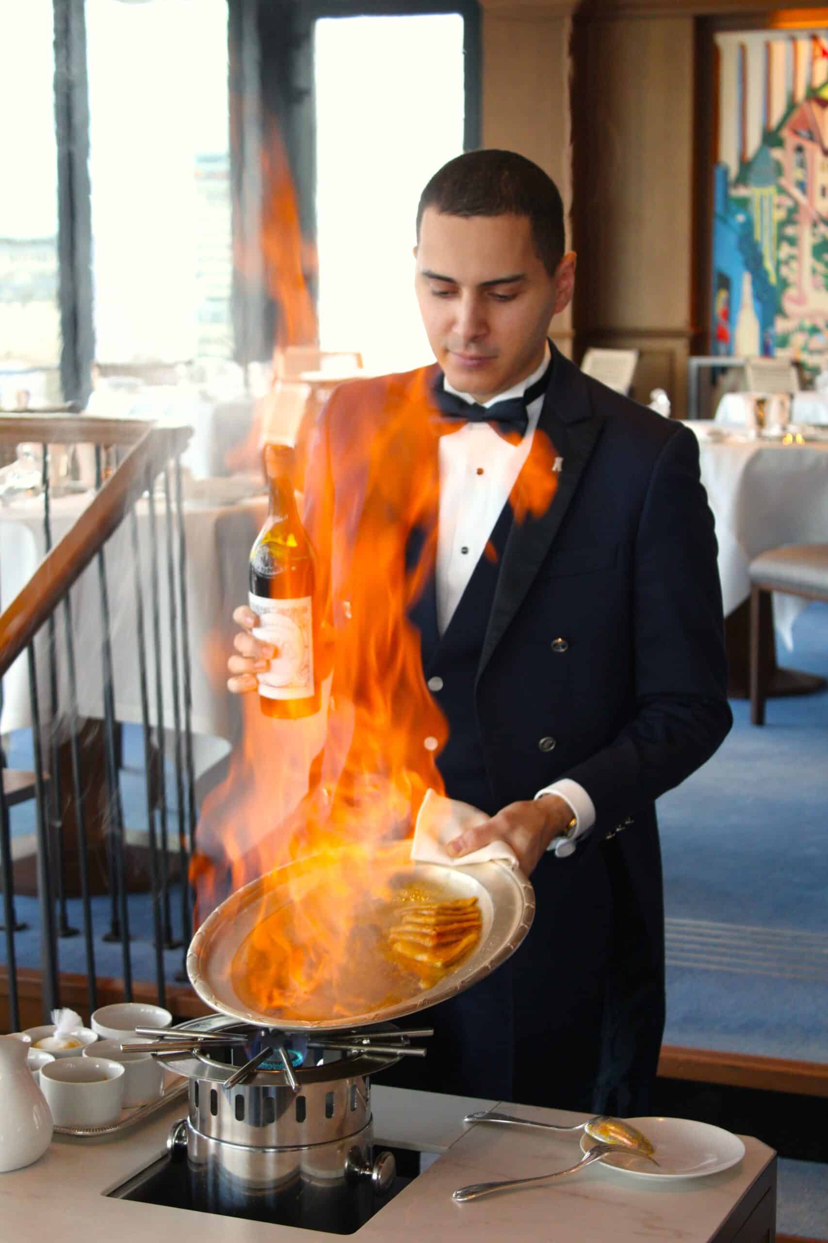 Notre service en salle orchestré avec élégance et expertise par Stéphane Trapier, Directeur de la Restauration, est à la fois rythmé par les découpes et flambages, qui contribuent depuis toujours à l’atmosphère unique du restaurant, mais également par le ballet des Maîtres d’Hôtel en queue-de-pie. Ceux-ci, par leur savoir-faire et l’excellence de leurs gestes, offrent à nos convives des instants précieux et continuent d’incarner le raffinement et l’art de recevoir à la française.