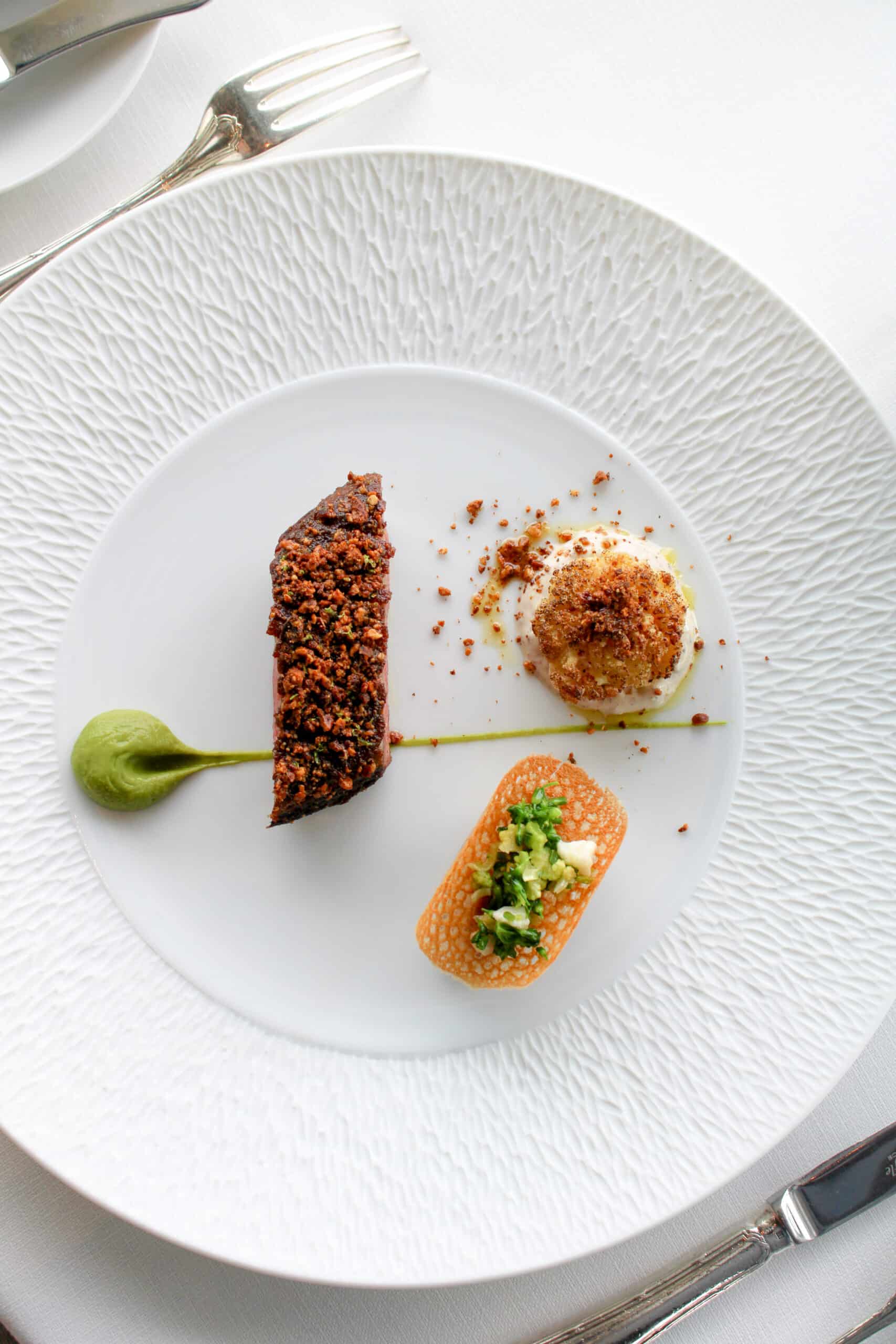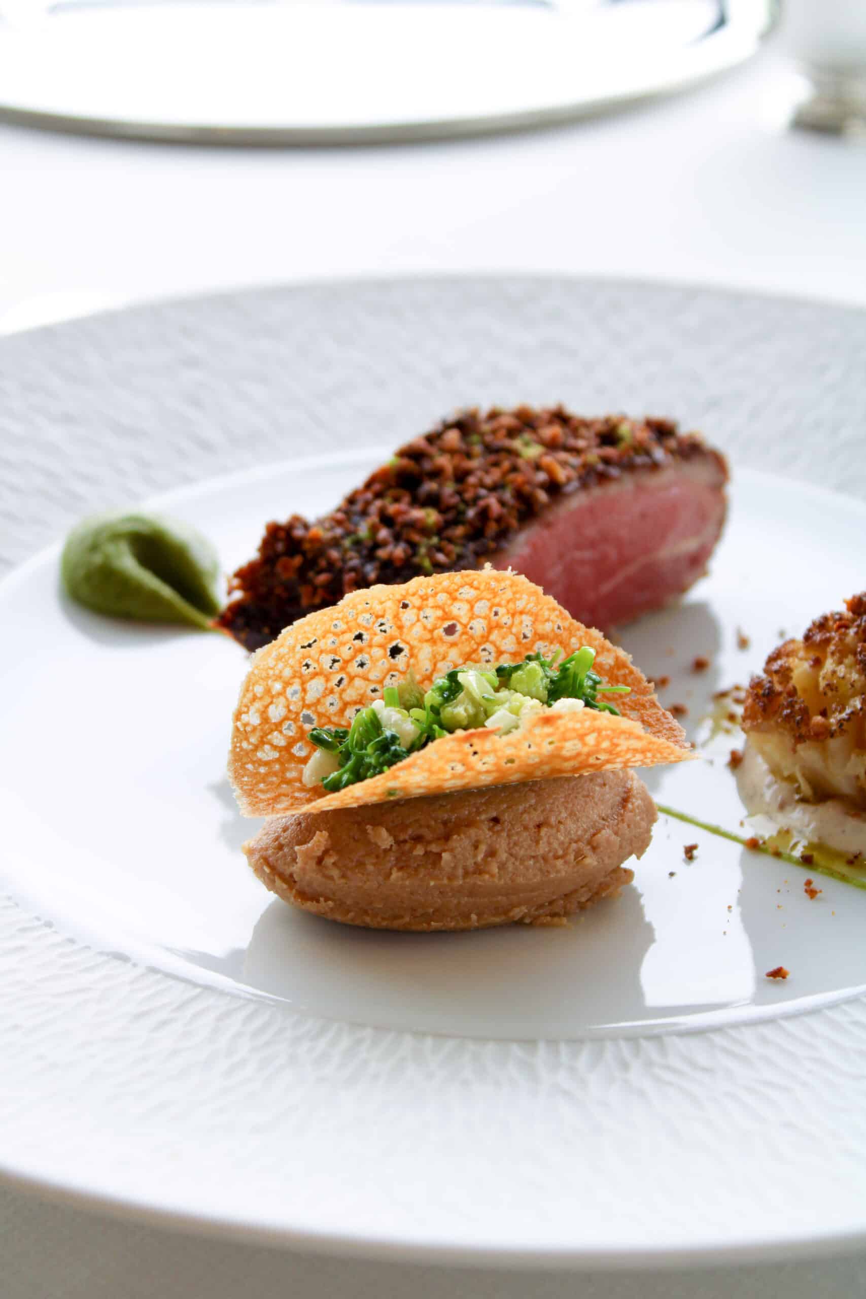 Lors de ce dîner unique, chaque chef a proposé l’une de ses recettes reflétant leur savoir-faire, leur créativité et leur signature gastronomique. Yannick Franques a impressionné les convives le « Caneton au fil du temps » de notre restaurant, un plat composé de suprême rôti aux amandes fumées, accompagné d’un caviar d’aubergines au yaourt grec, d’une pastilla de cuisse en stifado, et relevé par un jus de mélasse de Corinthe.