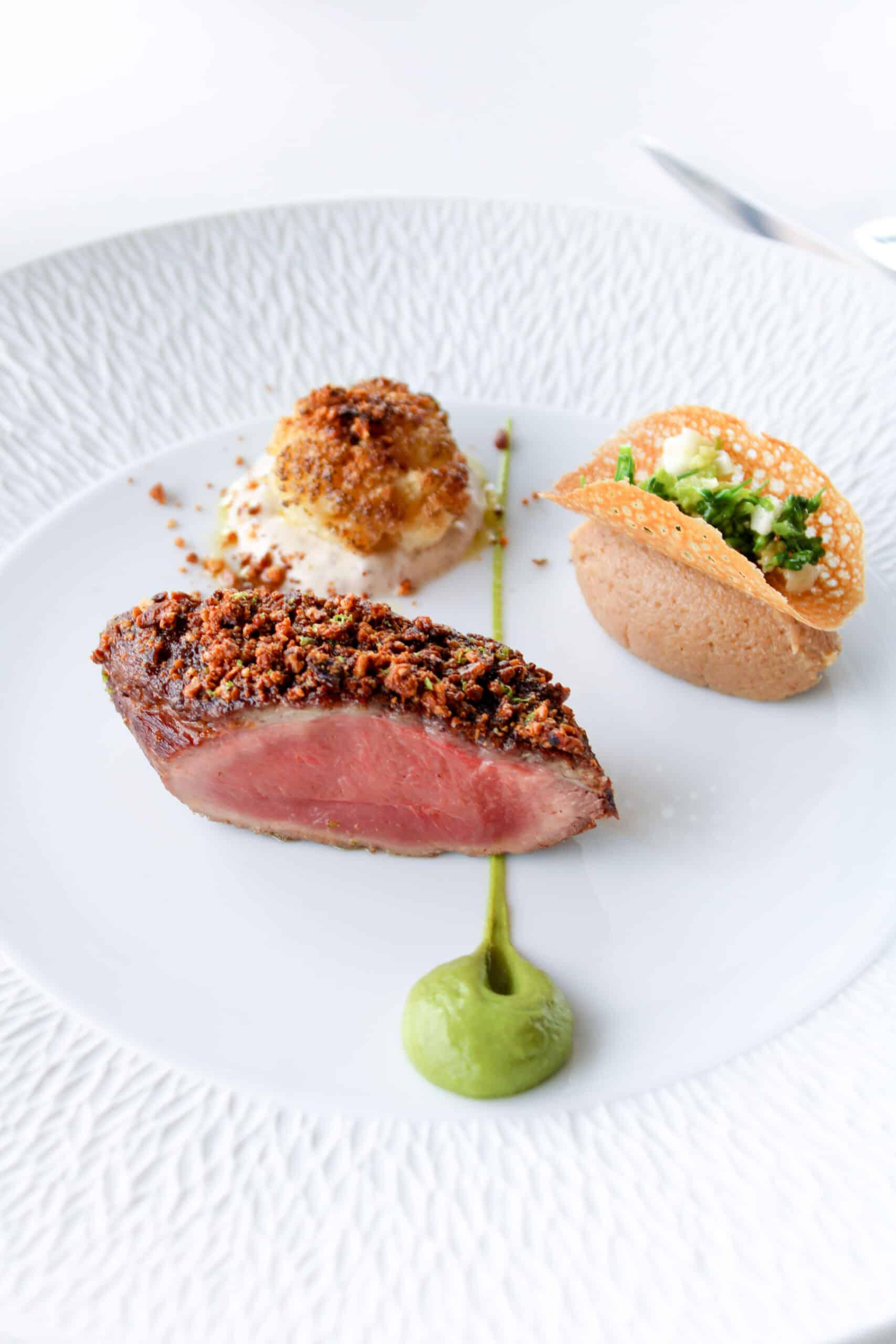 During this unique dinner, each chef presented one of their recipes, showcasing their expertise, creativity, and culinary signature. Yannick Franques impressed the guests with the “Caneton au fil du temps” from our restaurant, a dish featuring roasted duck breast with smoked almonds, accompanied by eggplant caviar with Greek yogurt, a pastilla of leg in stifado, and enhanced by a Corinthian molasses jus.